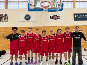 Am Sonntagnachmittag gastierte unsere männliche U18 bei der HTG Bad Homburg. Die Haaner zeigten von Beginn an eine starke Leistung und konnten sich schnell einen kleinen Vorsprung erarbeiten. In der Offense spielten die SVD’ler schön als Team zusammen und auch defensiv sahen die mitgereisten Zuschauer einen guten Auftritt der Gäste. So gewann man das erste Viertel mit 16:20. Auch im darauffolgenden Spielabschnitt waren die Haaner das bessere Team und bauten ihren Vorsprung weiter aus. Auf einen kleinen Lauf der Gastgeber fand man kurz vor der Pause genau die richtige Antwort. Mit einer 34:42 Führung ging es in die Kabine. Nach der Pause legten die SVD’ler nochmal eine Schippe obendrauf. Unsere Jungs zeigten herausragende Spielzüge und überrannte die Bad Homburger immer wieder mit schön ausgespielten Fastbreaks. Auf diese Weise gelang es ihnen den Vorsprung zum Schlussviertel auf 50:67 auszubauen. Im letzten Spielabschnitt ließen die Haaner dann nichts mehr anbrennen, sodass sich die Fans und die Mannschaft am Ende über einen hochverdienten 63:84 Auswärtssieg freuen konnten. Bei dieser super Leistung trug jeder Spieler einen großen Teil zum Erfolg bei.