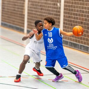 Nach zwei Niederlagen unserer MU12-2 wollten die Jungs endlich mal einen Sieg nach Hause mitnehmen. Man empfing die Darmstädter zur Abwechslung mal in der Heinrich-Heine-Schule. Dies spielte aber für die Jungs keine Rolle, da sie sich den ersten Sieg nach Hause holten. Dies taten sie vor allem durch eine gute und saubere Defense. Man nahm die Gegner rechtzeitig auf und machte früh Druck. Zusammen mit Offensiverebounds, die man dann in Punkte verwandelte, gelang es den Jungs, früh einen Vorsprung zu erspielen. Vor allem im 3., 4. und 5. Zehntel stach die tolle Defense der Jungs hervor. Die Gäste konnten keinen einzigen Punkt erzielen, so sehr wurden sie unter Druck gesetzt.