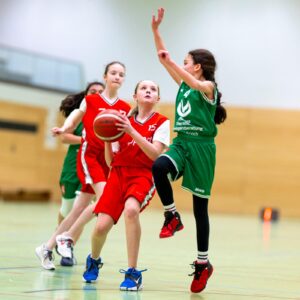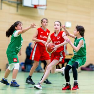 Für die WU12 des TSV Dreieichenhain stand am Sonntagabend das erste Spiel des Jahres 2026 auf dem Programm. Es ging zur ersten Mannschaft von Rüsselsheim-Taunusstein. Ob die späte Uhrzeit oder die lange Weihnachtspause schuld waren, ließ sich nicht eindeutig klären – jedenfalls brauchten die Mädels eine Weile, um richtig in Schwung zu kommen. Zahlreiche Würfe wollten einfach nicht den Weg in den Korb finden und in der Verteidigung war man stellenweise ein bisschen zu höflich und nicht konsequent genug. So blieb die Partie zunächst lange ausgeglichen. Erst gegen Ende der ersten Halbzeit schienen die Mädels aus Dreieichenhain aufzuwachen: Mit einigen leichten Ballgewinnen konnte sich der TSVD erstmals deutlicher absetzen (Halbzeitstand 9:28).