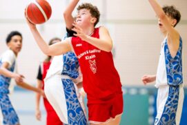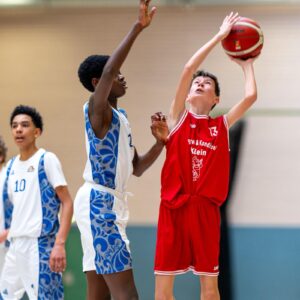 Aufgrund der schulischen Skifreizeiten empfing unsere MU14 Oberliga Mannschaft die Gäste der Fraport Skyliners nur zu acht. Das Aufwärmen sah aufgrund der Größenverhältnisse aus wie bei David gegen Goliath. Dennoch hatten sich die Dreieichenhainer vorgenommen, so gut wie möglich dagegen zu halten und das taten sie dann auch. Nach 9 Minuten stand es lediglich 14:20 für die Gäste des Bundeliganachwuchsprogramms. Auch wenn sich der Vorsprung der Skyliners bis zur Halbzeit auf 27:51 erhöhte, zeigten die Dreieichenhainer guten Kampfgeist und schönen Teambasketball. In der zweiten Spielhälfte schafften sie es sogar, auf Augenhöhe mitzuspielen. Die Zuschauer sahen ein tolles Jugendbasketballspiel und die Dreieichenhainer bewiesen einmal mehr, dass sie völlig zurecht in der besten Liga ihrer Altersklasse mitspielen, auch wenn in dieser Saison nicht allzu viele Siege eingefahren werden. „Die Lernkurve ist enorm und die Spieler wachsen individuell sowie als Team immer weiter zusammen!“, so das Trainerteam.