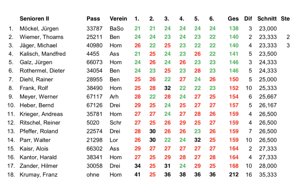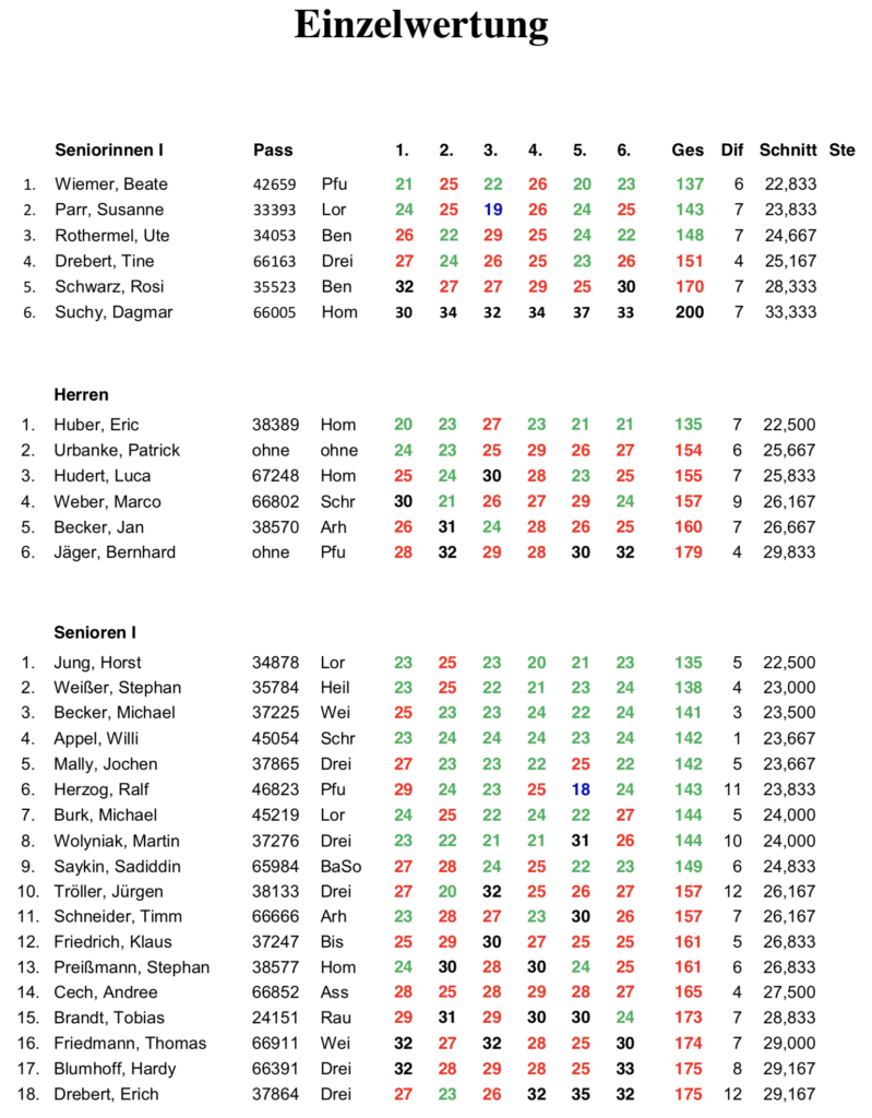 Mannschafts- und Einzelwettbewerbe je 6 Durchgänge